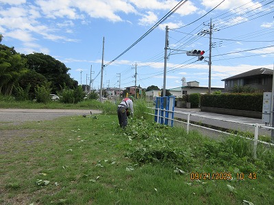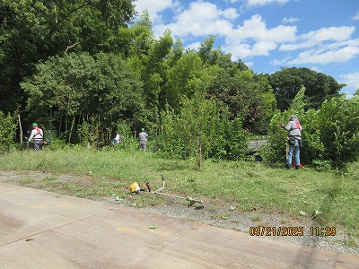 町営駐車場 道路側の草刈り