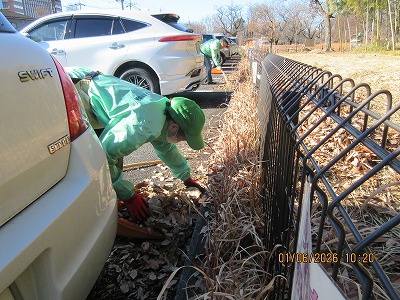 2.薬局駐車場の落ち葉清掃とK宅道路側落ち葉清掃