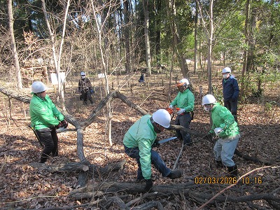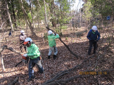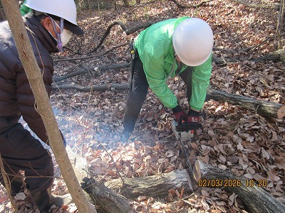 白いテープ目印の木伐採作業(伐採4本)