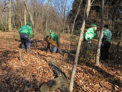 ・枯れ葉飛散防止ネットの撤去作業