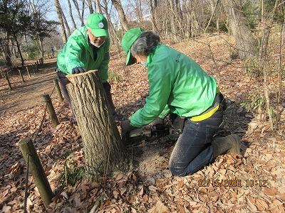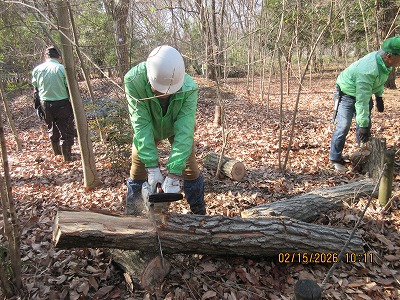 前回の伐採した木 玉切り作業